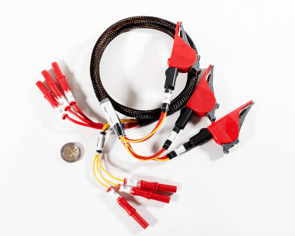 The measuring cables for the DPG10 and DPG20 series are tailored for precise, high-current inductance measurement. The standard 4-wire configuration separates the measuring current from the sensor connection, ensuring highly accurate readings even under pulsed high-current conditions.