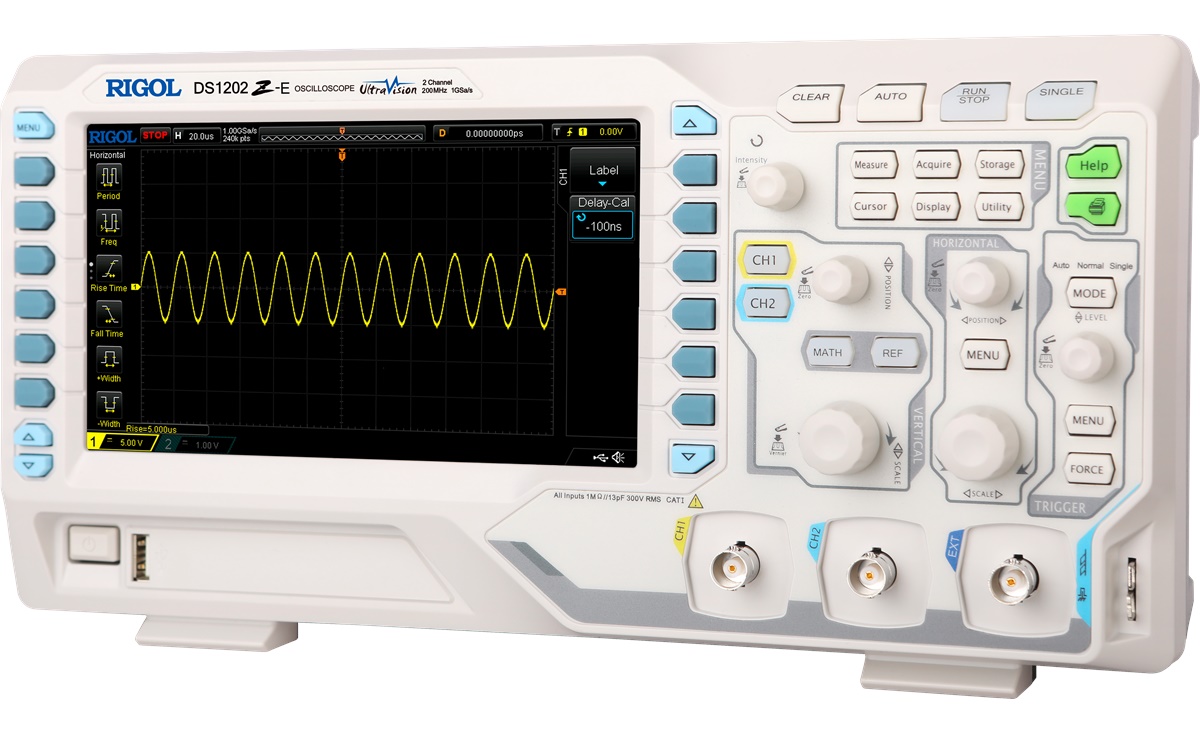 The Rigol DS1102Z-E is equipped with well designed and easy to use control panels offering comprehensive ease-of-use functions for all measuring tasks. The menu navigation is intuitive and available in several languages.